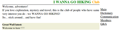 Early in the game, the player can transform the website title from “I WANNA GO HOME Club” to “I WANNA GO HIKING Club”. The title itself serves as a menu, with the letter “I” leading to “Inventory” and the letter “H” leading to “History”. The latter shows which rooms the player has already visited. Different room types are denoted by different colors.